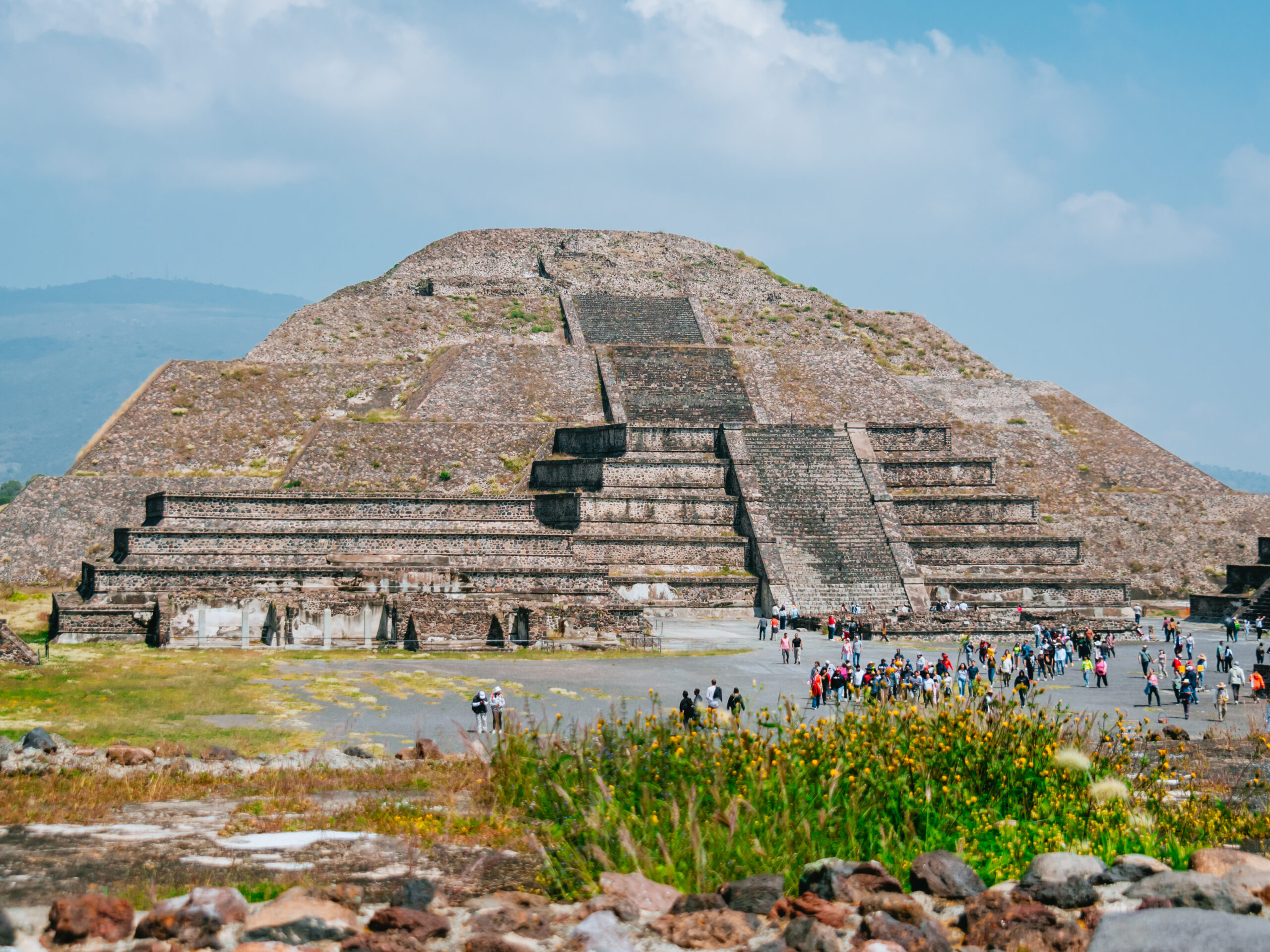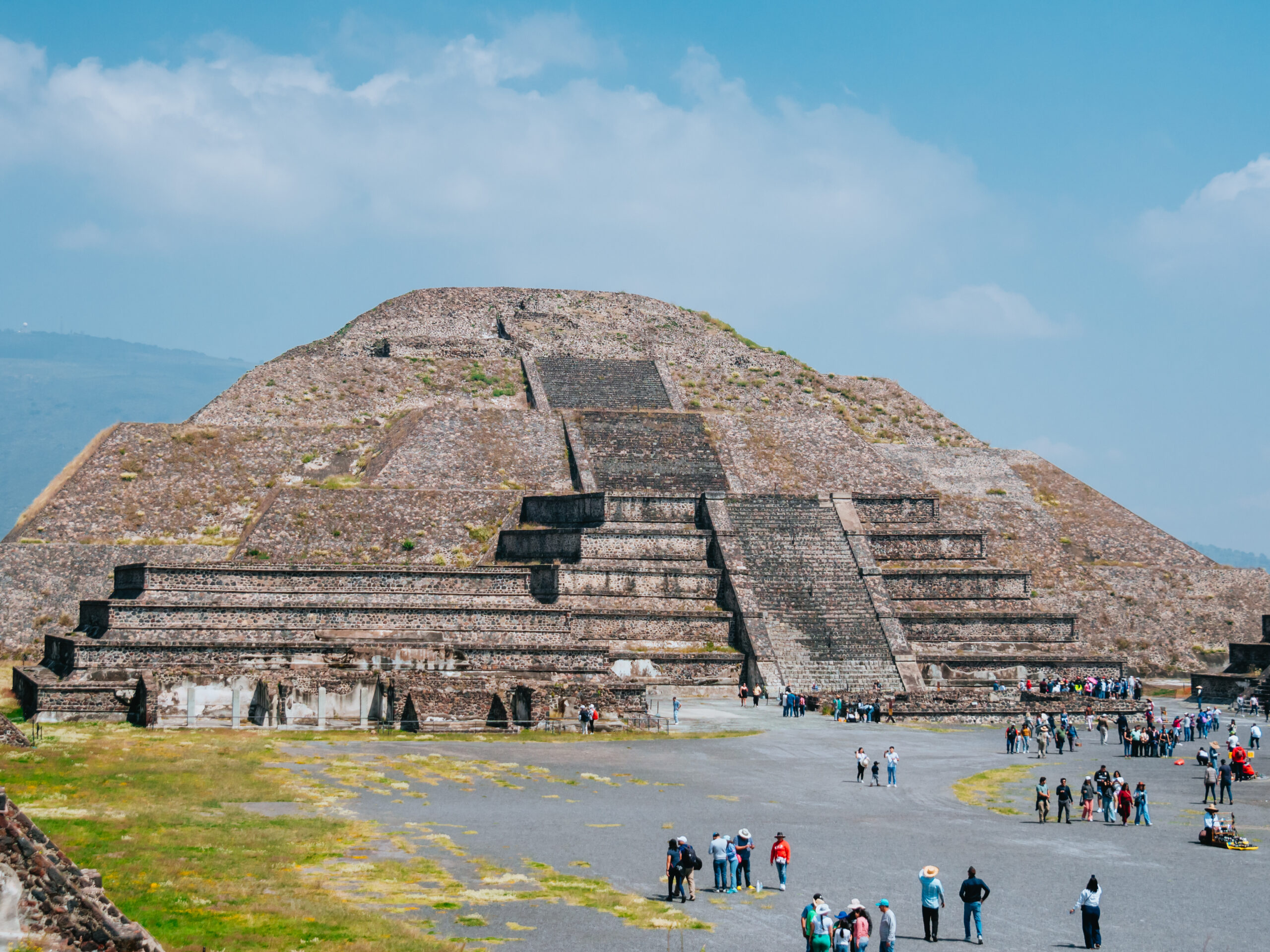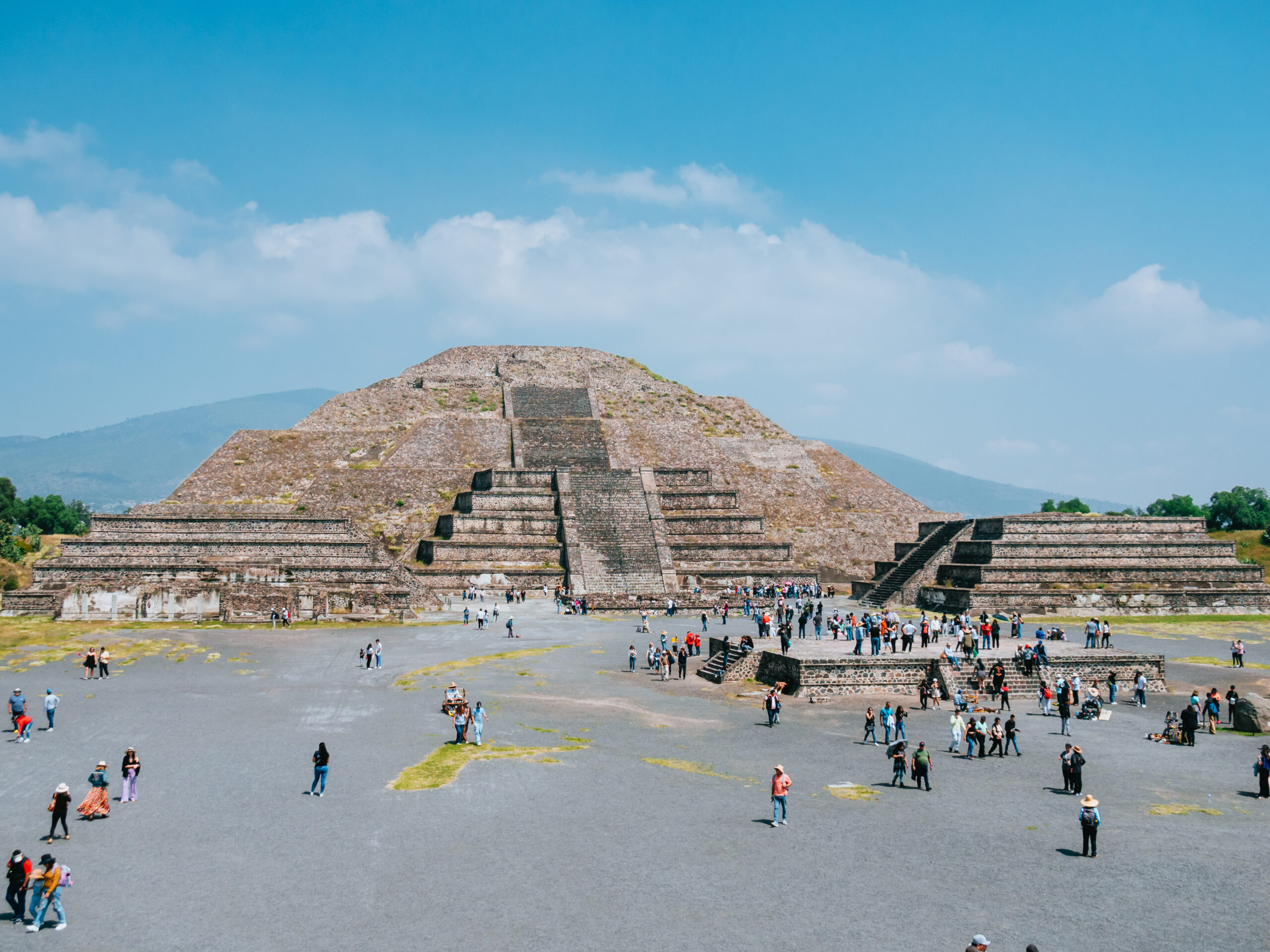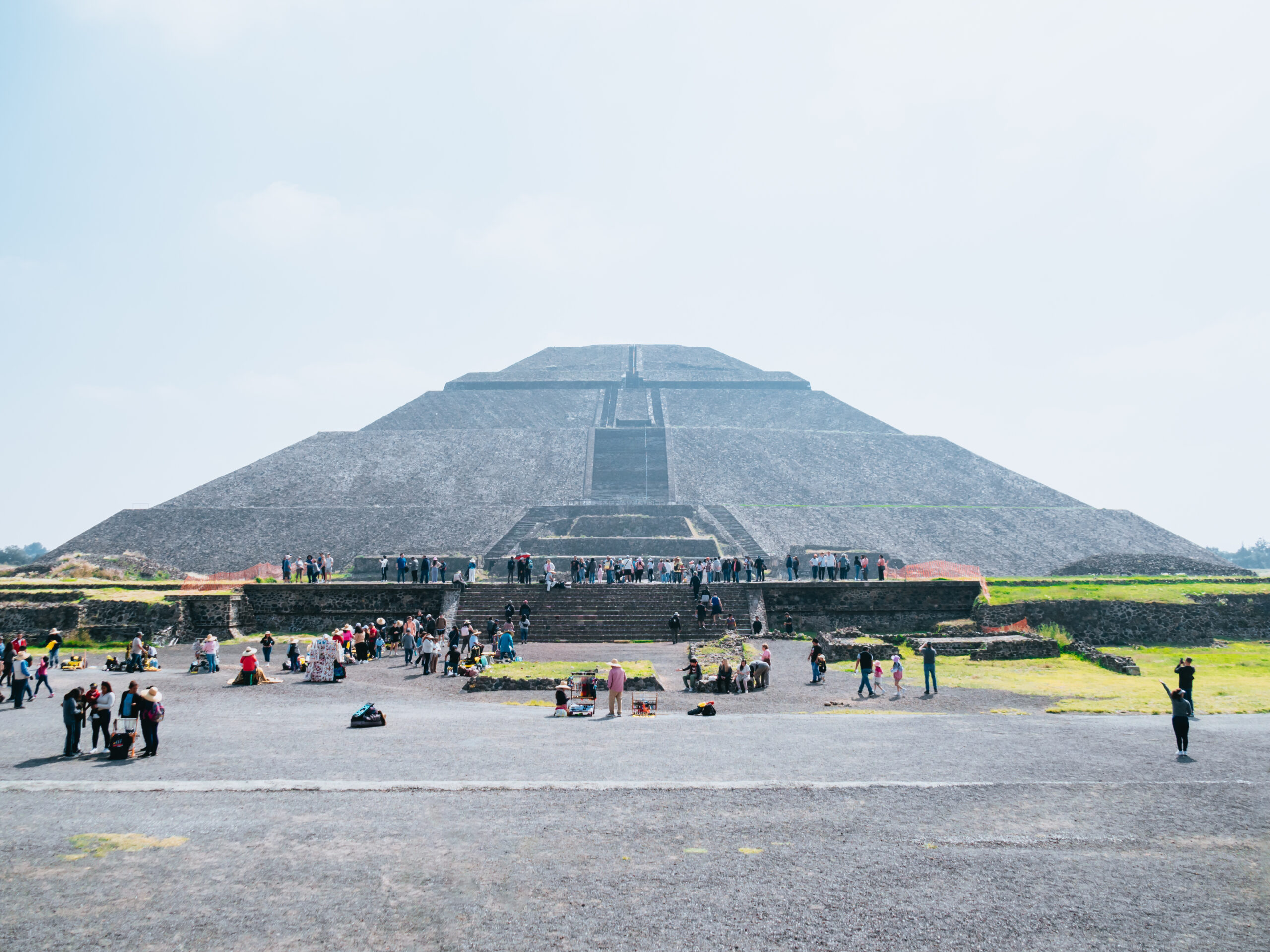 テオティワカン(Teotihuacan)は、紀元前2〜6世紀まで繁栄した、古代メソアメリカの文明都市。独自のテオティワカン文明の中心として、当時のアメリカ大陸では最大規模を誇り、最盛期の人口は10〜20万人ともいわれています。7世紀に衰退して滅亡した理由は諸説あり、現在も謎の多い遺跡です。「テオティワカン」は、ナワトル語で「神々の都市」という意味で、13世紀頃に遺跡を発見した、アステカ人が命名しました。