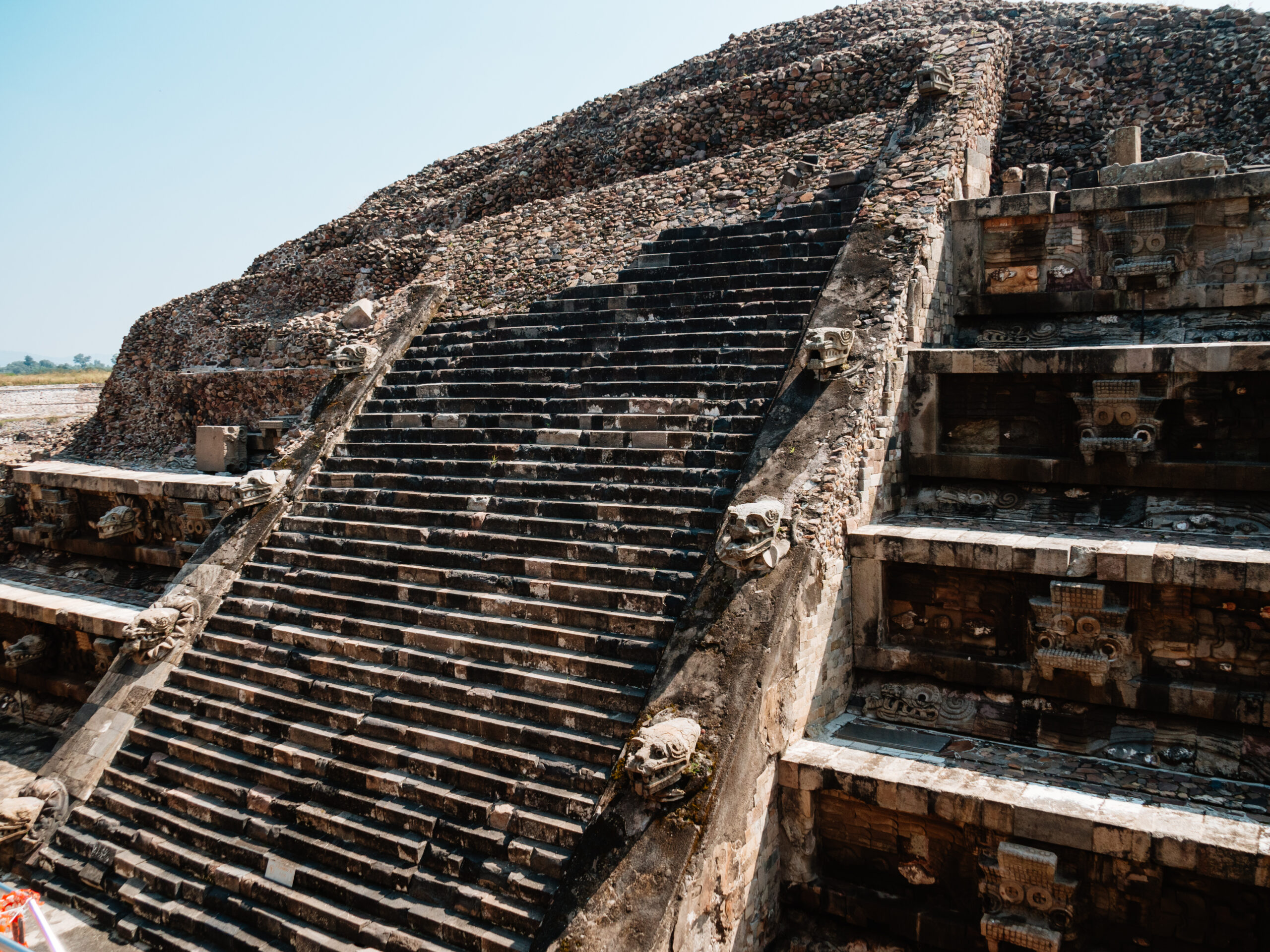 格子状に道路が配された都市全体が真北から15度30分ほど東に傾いて設計されていたりと未だ謎の多い古代遺跡テオティワカン。2つのピラミッドを地上と天空をつなぐものとして見たり、古代の宇宙論に思いを馳せると不思議な感覚になる、メキシコに来たらぜひ寄って欲しいパワースポットです。