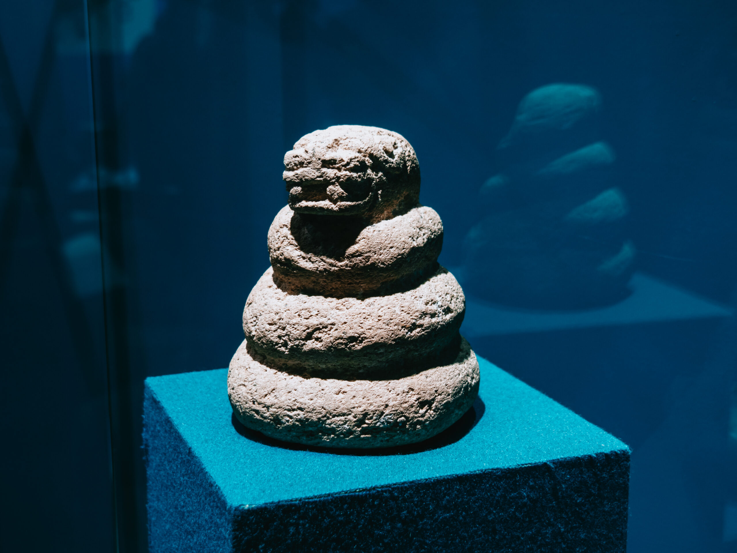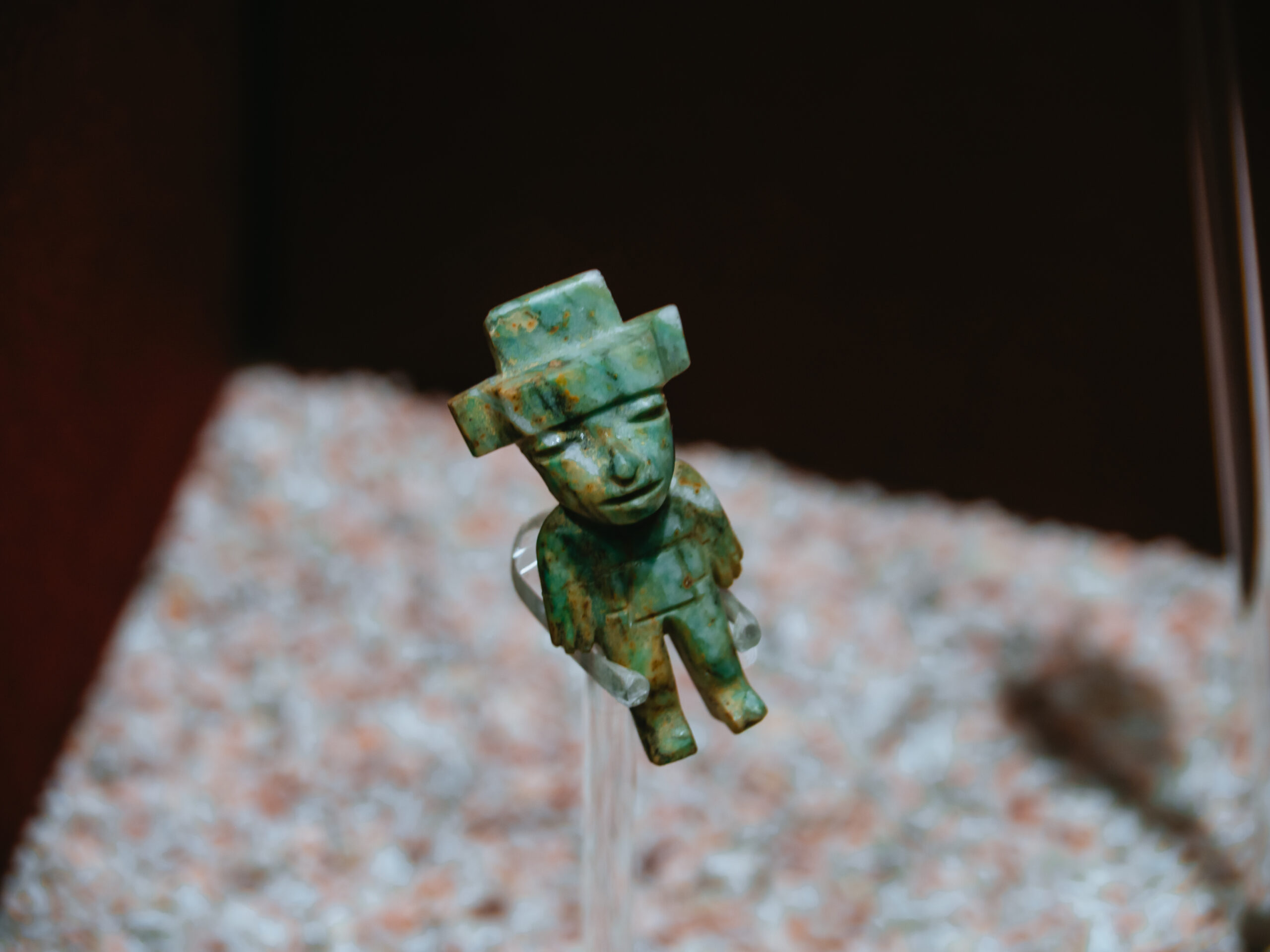 ケツァルの目の部分には、周辺地域で採掘され石器として用いられていた黒曜石が埋め込まれています。