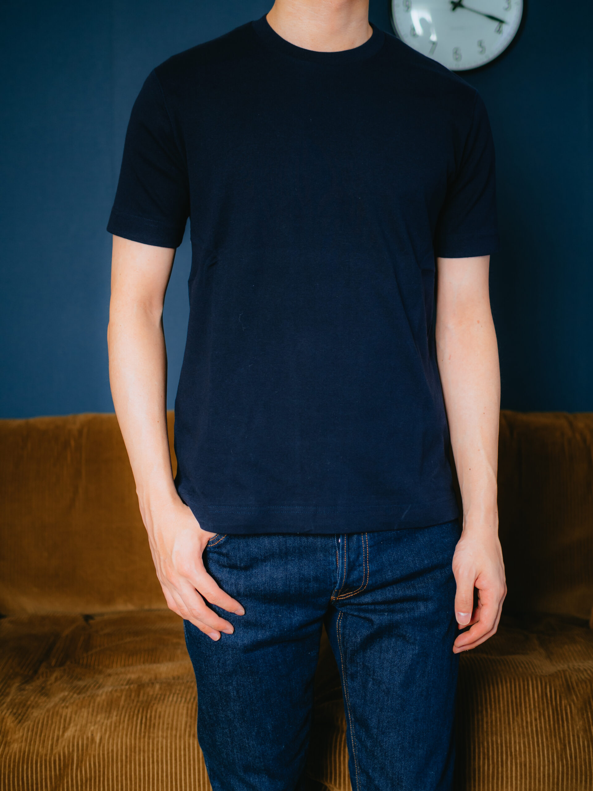 Jamesは市販のTシャツに比べて肌触りの良さは感じます。タイト目なシルエット、首元が広めで袖丈が短いのは個人的にはカジュアル感が強すぎてあまり好みではありません。